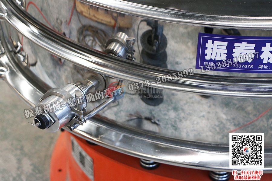 2.超聲波旋振篩的篩子清潔裝置是超聲波換能器,沒有彈跳球,束環等附件,因此在檢測過程中不會有雜質。(隨著旋振篩壽命的增加,彈跳球會磨損。一些細粉狀的橡膠會通過篩進入成品材料,而超聲波旋振篩則不會這樣)